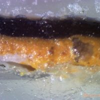 Ecaille de peinture vue sous microscope